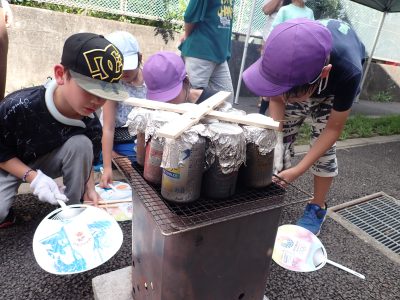 飯盒と空き缶にお米を準備しました